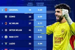 德轉(zhuǎn)盤點(diǎn)了本賽季五大聯(lián)賽球隊(duì)在各項(xiàng)賽事場均丟球最少榜單,阿森納與科莫并列最少,具體如下(總丟球+場均丟球):