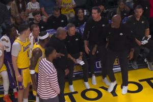 湖人ESPN隊(duì)記Dave McMenamin報(bào)道,湖人主教練雷迪克第二節(jié)剛開(kāi)始就叫暫停,將范德彪換下場(chǎng),后者情緒激動(dòng)與教練發(fā)生口角。里夫斯和助理教練介入阻隔雙方。隨后克內(nèi)克特將范德彪換下。