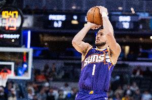 布克上半場(chǎng)出戰(zhàn)18分鐘9投5中,三分5中2,罰球10中9砍下21分3籃板4助攻,正負(fù)值+9。