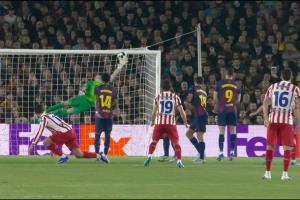 體育資訊04月09日訊 歐冠1/4決賽首回合,巴薩對(duì)陣馬競(jìng)。45分鐘,阿爾瓦雷斯任意球世界波破門,馬競(jìng)1-0領(lǐng)先巴薩。