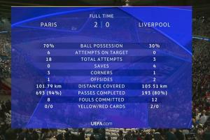 體育資訊04月09日訊 巴黎vs利物浦全場結束,巴黎2-0取得首回合勝利。