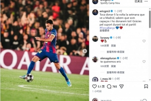 巴薩球員埃里克·加西亞社媒鼓勵球隊,他寫道:“下周我們要在馬德里完成逆轉(zhuǎn),我們知道自己有這個能力,會拼盡全力!感謝球迷整場比賽的支持?!?/p>
