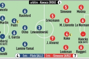 巴薩:霍安·加西亞(5分)、馬?。?分)、孔德(4分)、佩德里(4分)、埃里克·加西亞(6分)、奧爾莫(6分)、拉什福德(6分)