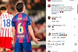 加維社媒曬出比賽照片,并寫道:“昨天我們本應(yīng)得到更好的結(jié)果,但這就是足球。還有次回合比賽,讓我們團(tuán)結(jié)一心!”