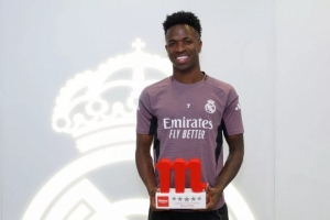 維尼修斯被評(píng)選為三月份“Mahou五星球員”。這位前鋒獲得了這一殊榮,以表彰他在上個(gè)月參加的6場(chǎng)比賽中的杰出表現(xiàn)。在那期間,維尼修斯在對(duì)陣曼城的歐冠1/8決賽次回合中上演梅開(kāi)二度,并在聯(lián)賽第29輪對(duì)陣馬競(jìng)的德比戰(zhàn)中再次打入兩球。