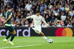 在貝林厄姆的一次進攻推進中,他給姆巴佩送出一腳傳球,姆巴佩射門迫使諾伊爾做出撲救?;蜀R的第一次威脅進攻就打上了貝林厄姆的烙印。