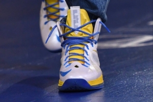 體育資訊4月10日訊 勇士主場(chǎng)迎戰(zhàn)湖人,庫(kù)里今天穿著詹姆斯經(jīng)典戰(zhàn)靴LeBron 10入場(chǎng)。