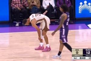 GIF-庫(kù)里有點(diǎn)崴腳
