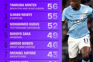 體育資訊3月24日訊 數(shù)據(jù)機(jī)構(gòu)Squawka統(tǒng)計(jì)出了本賽季英超球員過人數(shù)情況,曼城邊鋒多庫以63次居首。