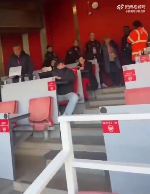 不敢走了??伯恩茅斯的分析師在比賽結(jié)束后被要求留在自己的座位上,因?yàn)樗麄冊诿襟w席瘋狂慶祝球隊(duì)的制勝球,阿森納球迷對(duì)此十分憤怒....