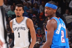 截至發(fā)稿,馬刺全隊(duì)三分命中率36%,雷霆為36.4%。