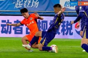 體育資訊04月12日訊 津門虎vs海牛第82分鐘,黃嘉輝對金永浩犯規(guī),裁判一開始沒有出牌。