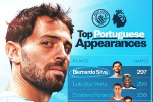 體育資訊4月12日訊 本輪英超將迎來焦點(diǎn)戰(zhàn)曼城對(duì)陣切爾西,B席本場(chǎng)首發(fā)出場(chǎng),這是他第297次英超出場(chǎng),創(chuàng)造了葡萄牙球員在該項(xiàng)賽事歷史紀(jì)錄,以下為具體榜單:
