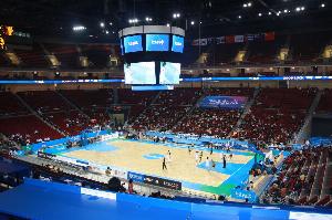 比賽結(jié)束后,場邊發(fā)生了一個(gè)小插曲,上海男籃球員李添榮想和場邊的球迷擊掌互動,但是遭到北京主場工作人員的攔截。