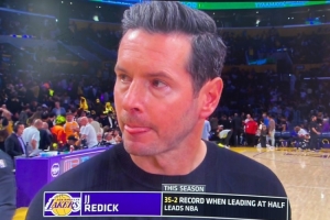 體育資訊4月13日訊 NBA常規(guī)賽,湖人半場62-45領(lǐng)先爵士。主帥雷迪克在中場時(shí)接受了采訪。
