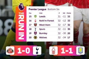 體育資訊04月13日訊 英超第32輪,熱刺客場0-1不敵桑德蘭,未能脫離降級區(qū)。數(shù)據(jù)機構(gòu)最新數(shù)據(jù)顯示,熱刺的降級概率進一步增加,已經(jīng)是降級大熱門。