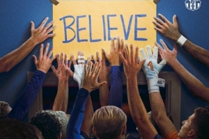 海報(bào)中,“Believe”(相信)一詞格外醒目,巴薩官推還配文“相信方能感受活著”,這句話(huà)引用了美國(guó)喜劇《足球教練》中的臺(tái)詞。