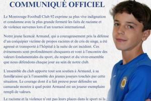體育資訊04月13日訊 法國球隊蒙魯日92發(fā)布官方聲明,注冊在球隊的13歲小將阿爾芒,在代表巴黎出戰(zhàn)U15錦標賽時,因維護遭受種族歧視的隊友被毆打,導致鼻骨骨折。