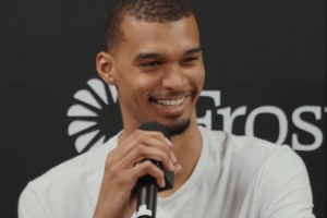 本賽季,文班攻防兩端表現(xiàn)高效且極具統(tǒng)治力,他出戰(zhàn)64場,場均可以得到25分11.5籃板3.1助攻1搶斷。他場均可以送出3.1記蓋帽,榮膺本賽季聯(lián)盟蓋帽王(季中錦標賽決賽不算常規(guī)賽出場次數(shù),但計入65場評獎資格)。