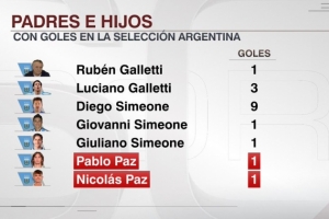 據(jù)ESPN統(tǒng)計(jì),巴勃羅·帕斯和尼科·帕斯成為第三對(duì)為阿根廷國(guó)家隊(duì)破門的父子,此前加萊蒂父子、西蒙尼父子做到這點(diǎn)。