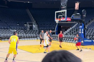 場下都是哥們兒!威少與德羅贊“圍毆”追夢 隨后三人大笑擁抱